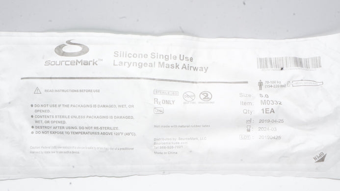 - SourceMark M0332 Silicone Laryngeal Mask Airway Size 5.0 70-100kg <40ml/60cm(x)