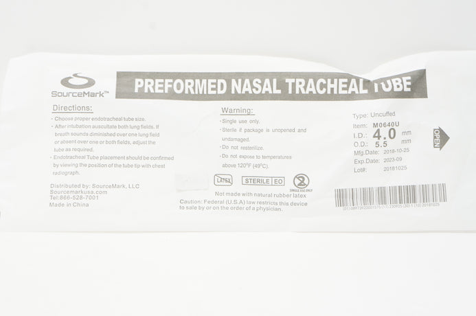- SourceMark M0640U Preformed Nasal Tracheal Tube 4.0mm x 5.5mm