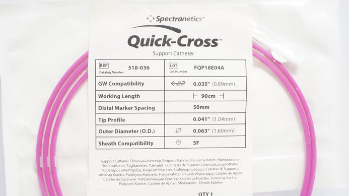- Spectranetics 518-036 Quick-Cross Support Cath. 5F x 0.035inch x 90cm (x)