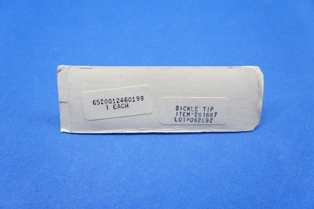 General characteristics item description: sickle shaped; color coded blue; tip length 0.950 in.; corrosion-resisting steel; use w/6520-01-162-2906 and 6520-01-204-8688; for removing calculus and stain from teeth