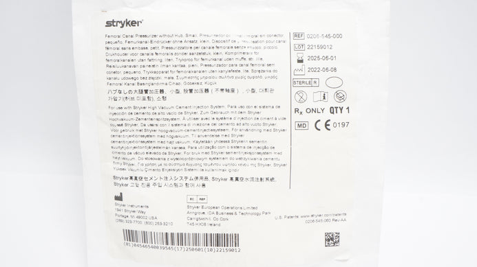 - Stryker 0206-545-000 Femoral Canal Pressurizer Without Hub, Small (x)