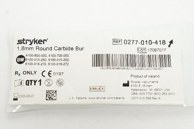 - Stryker 0277-010-418 1.8mm Round Carbide Bur (x)