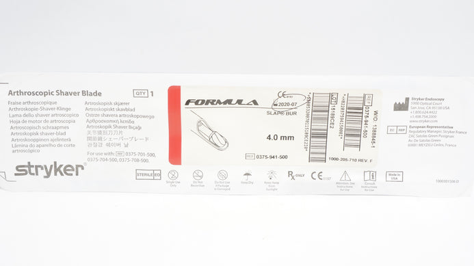 - Stryker 0375-941-500 Formula Slap 6-Flute Bur 4.0mm x 125mm (x)