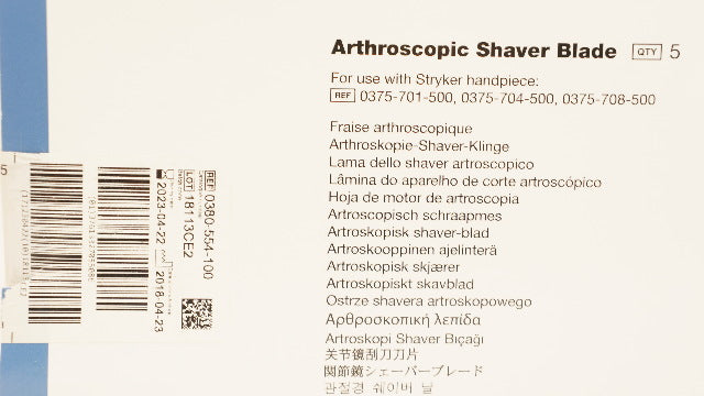 - Stryker 0380-554-100 Formula Arthroscopic Shaver Blade 5.0mm x 125mm - Box of 5