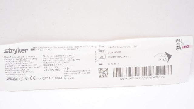 - Stryker 0406-630-115 Curved Cannula 100mm x 20G x 5mm