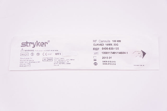 - Stryker 0406-630-125 RF Cannula, Curved 100mm, 20G, 10mm Tip (x)