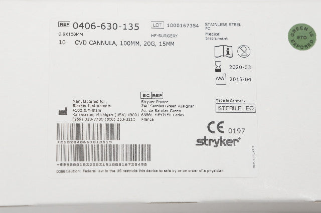 Stryker 0406-630-135 Curved Cannula, 100m, 20G, 15mm (x)