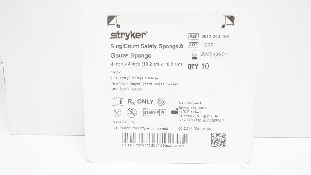 - Stryker 0612-244-160 SurgiCount Safety-Sponge 4inch x 4inch - Pack of 10