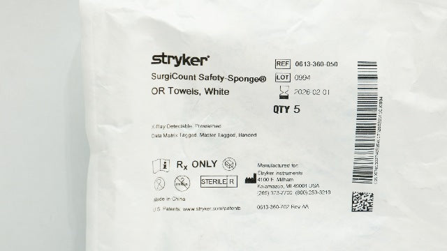- Stryker 0613-360-050 SurgiCount Safety-Sponge OR Towels, White - Pack of 5