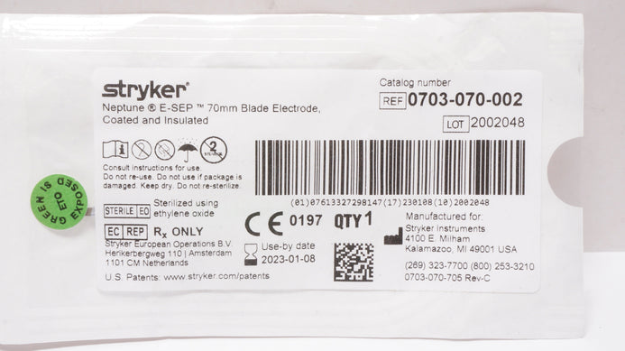 - Stryker 0703-070-002 Neptune E-SEP 70mm Blade Electrode Coated (x)