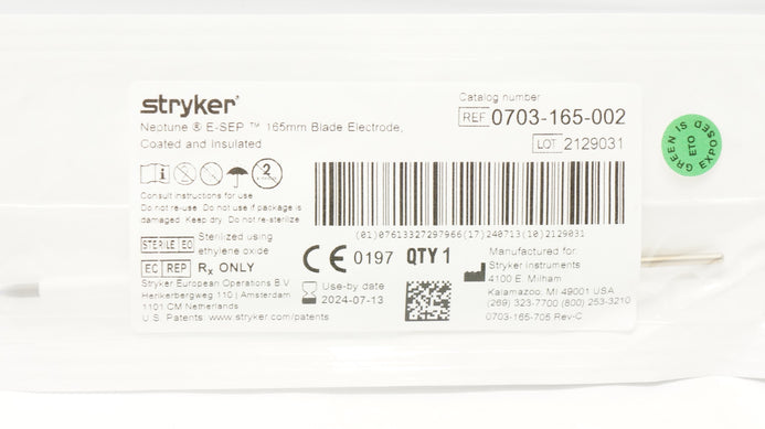 - Stryker 0703-165-002 Neptune E-SEP 165mm Blade Electrode, Coated & Insulated (x)