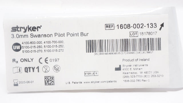 Stryker 1608-002-133 Swanson Pilot Point Bur 3.0mm (x)