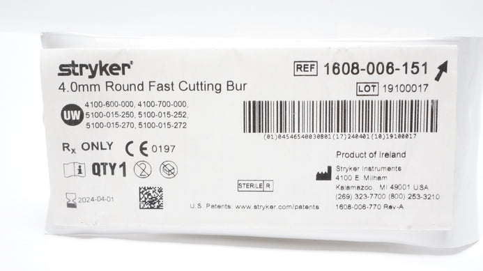 - Stryker 1608-006-151 4.0mm Round Fast Cutting Bur (x)