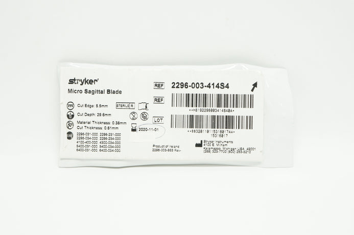 Stryker 2296-003-414S4 Micro Sagittal Blade 5.5mm x 29.6mm x 0.38mm