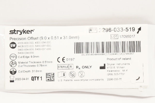 Stryker 2296-033-519 Precision Offset 9.0x0.51x31.0mm (x)
