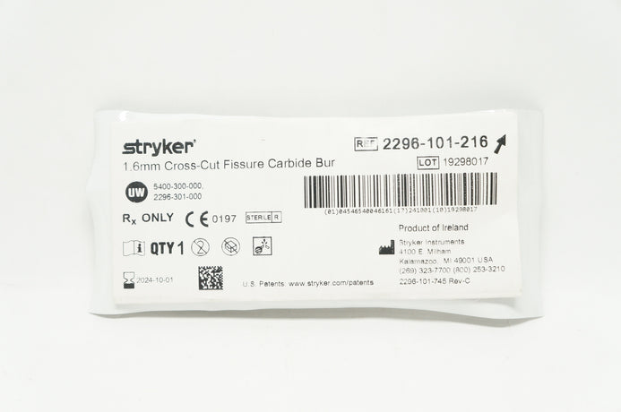 Stryker 2296-101-216 Cross Cut Fissure Carbide Bur 1.6mm