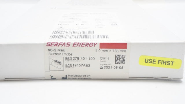Stryker 279-401-100 Serfas Energy Electrosurgical Probe 90-S Max Suction Prove 4mm x 135mm
