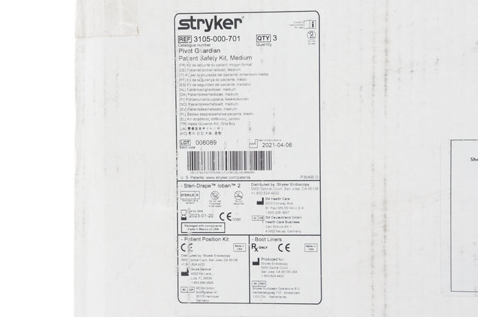 - Stryker 3105-000-701 Pivot Guardian Patient Safety Kit, Medium - Box of 3