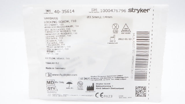 Stryker 40-35614 VARIAX LOCKING SCREW, T10, Diameter 3.5mm, L:14mm