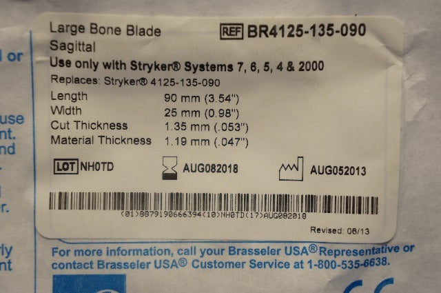 - Stryker 4125-135-090 Large Bone Sagittal Blade 90 x 25 x 1.35mm (x) 08-2018