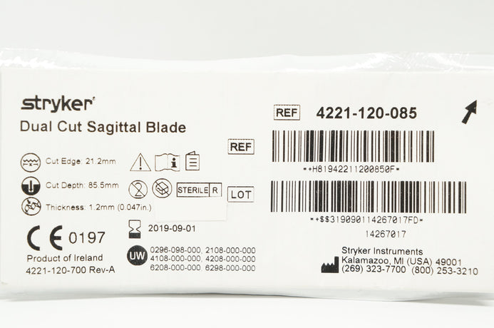 Stryker 4221-120-085 Dual Cut Sagittal Blade 21.2mm x 85.5mm x 0.047inch
