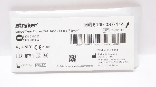 - Stryker 5100-037-114 Large Tear Cross Rasp 14.0 x 7.0mm (x)