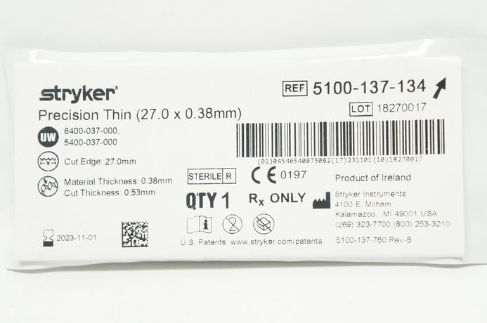 - Stryker 5100-137-134 Precision Thin 27.0 x 0.38mm