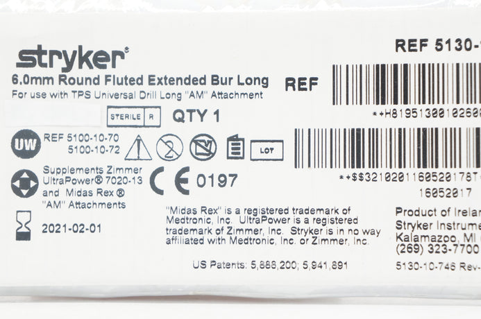 Stryker 5130-10-260 6.0mm Round Fluted Extended Bur Long (x)