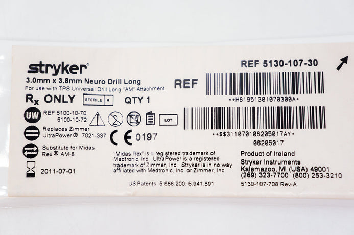 - Stryker 5130-107-30 Neuro Drill Long, 3.0mm x 3.8mm (x)