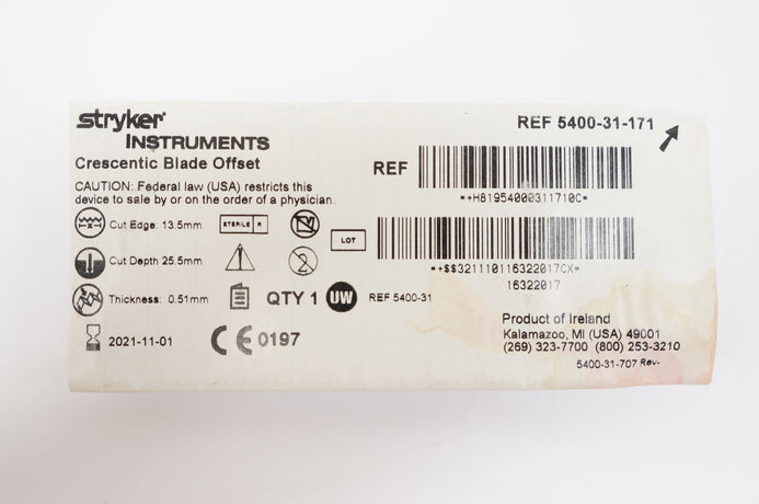 - Stryker 5400-31-171 Crescentic Blade Offset 13.5mm x 25.5mm x 0.51mm