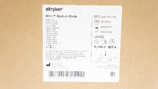 Stryker 5420-MED-000 Mill+ Medium Blade - Case of 4