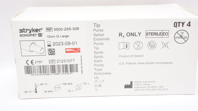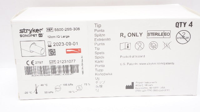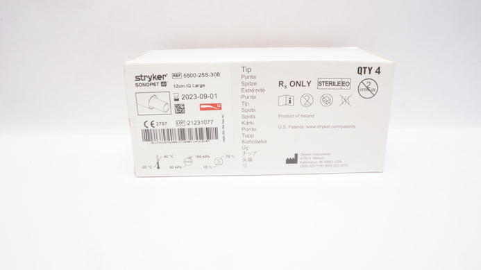 - Stryker 5500-25S-308 Sonopet Ultrasonic Aspirator 12cm IQ Large Tip - Box of 4