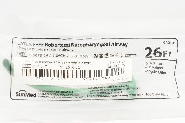- SunMed 1-5075-26 Robertazzi Nasopharyngeal Airway 26Fr 6.5ID x 8.6OD x 130mm (x)