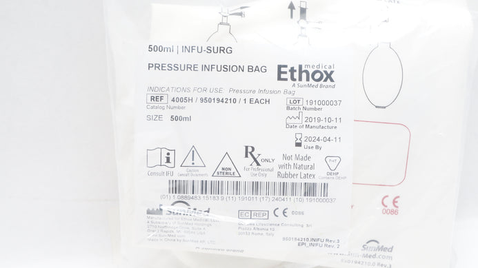 - SunMed V4005H Ethox Novaplus Pressure Infusion Bag 500mL (x)