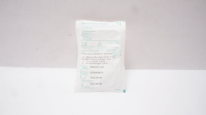 - Surecan 04447011-02 Safety II Needle 22Gx0.8in Maximum Flow Rate at325 Psi 2ml/s