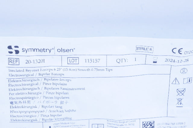 Symmentry 20-13201 Olsen Insulated Bayonet Forceps 6.25 inch Smooth 0.75mm Tips