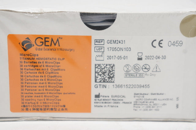 Synovis GEM2431 MicroClips Titanium Hemostatic Clips - Box of 30 (x)