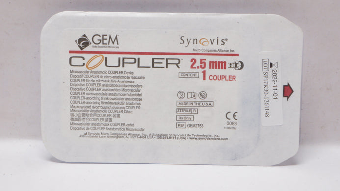 - Synovis GEM2753 GEM FlowCoupler 2.5 mm (x)