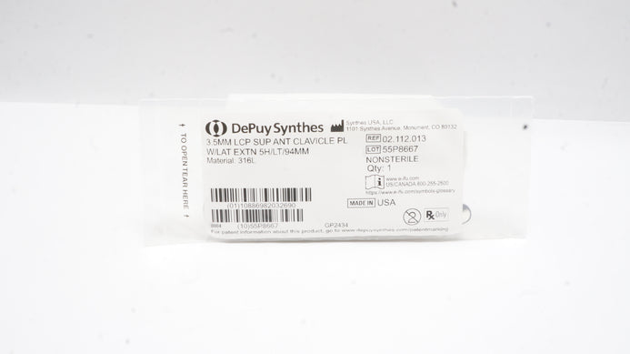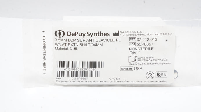 - DePuy Synthes 02.112.013 3.5mm LCP SUP ANT Clavicel Plate w/LAT Extn 5H/LT/94mm