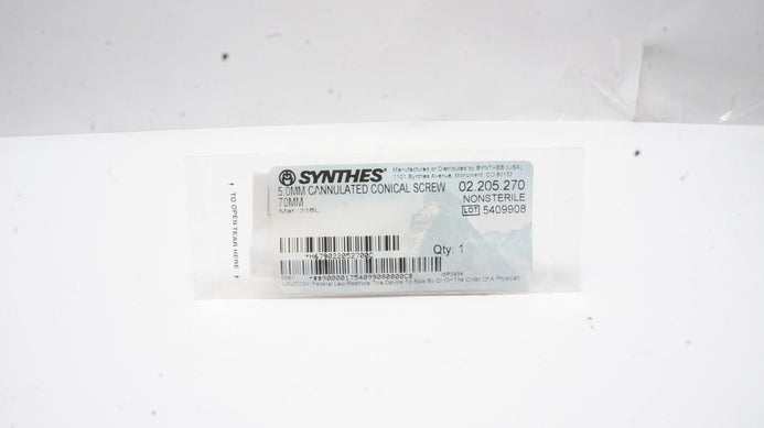 - Synthes 02.205.270 5.0mm Cannulated Conical Screw 70mm