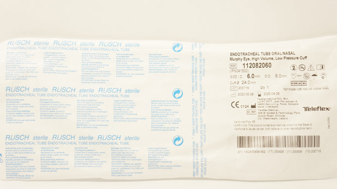 - Teleflex 112082060 Endotracheal Tube Oral/Nasal 6.0mm x 8.0mm x 24.0mm