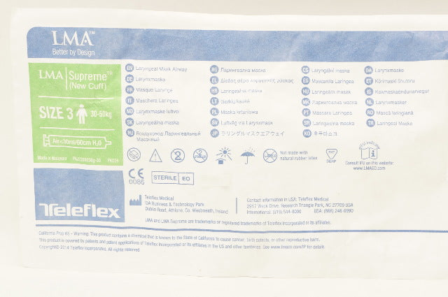 - Teleflex 175030 LMA Supreme Laryngoscope Mask Airway, Size 3 30-50kg, <30ml/60cm