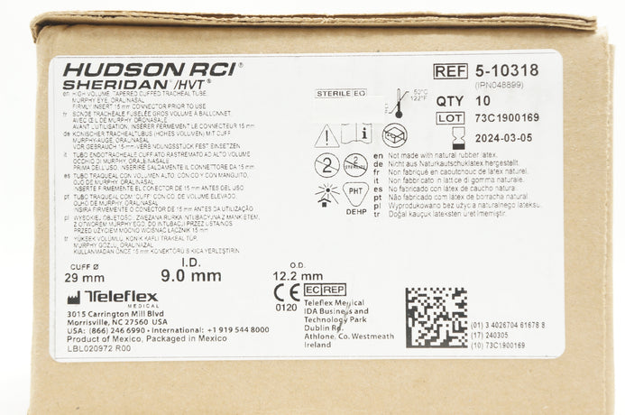 Teleflex 5-10318 Hudson RCI Tracheal Tube 29 x 12.2 x 9.0mm - Box of 10