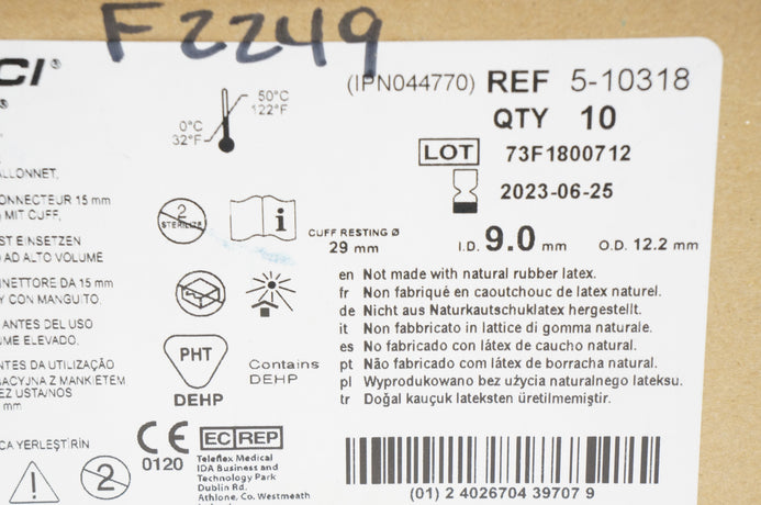 Teleflex 5-10318 Hudson RCI Tracheal Tube 9.0 ID x 12.2 OD x 29mm - Box of 10