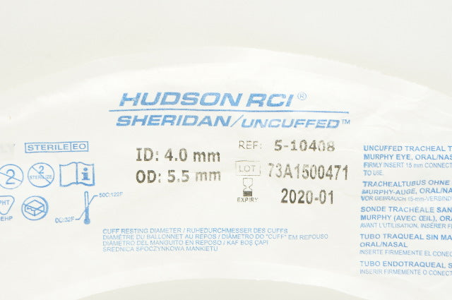 Teleflex 5-10408 Hudson RCI Sheridan Uncuffed Tracheal Tube 4.0mm x 5.5mm (x)