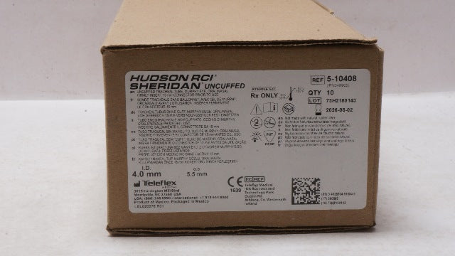 - Teleflex 5-10408 Hudson RCI Sheridan Uncuffed Tracheal Tube - Case of 10