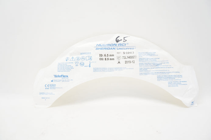 - Teleflex 5-10413 Hudson RCI Sheridan Uncuffed Tracheal Tube 6.5mm ID x 8.9mm OD (x)
