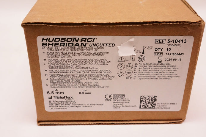 - Teleflex 5-10413 Hudson RCI Uncuffed Tracheal Tube 6.5mm x 8.9mm - Box of 10