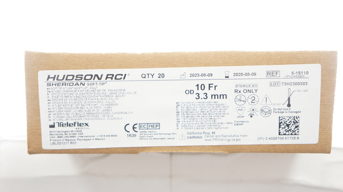 - Teleflex 5-15110 HUDSON RCI Sheridan Intubating Stylet 10Fr x 3.3mmOD- Box of 20
