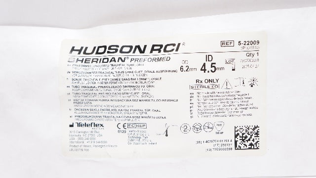 - Teleflex 5-22009 Hudson RCI Preformed Tracheal Tube Uncuffed Oral 6.2 x 4.5mm